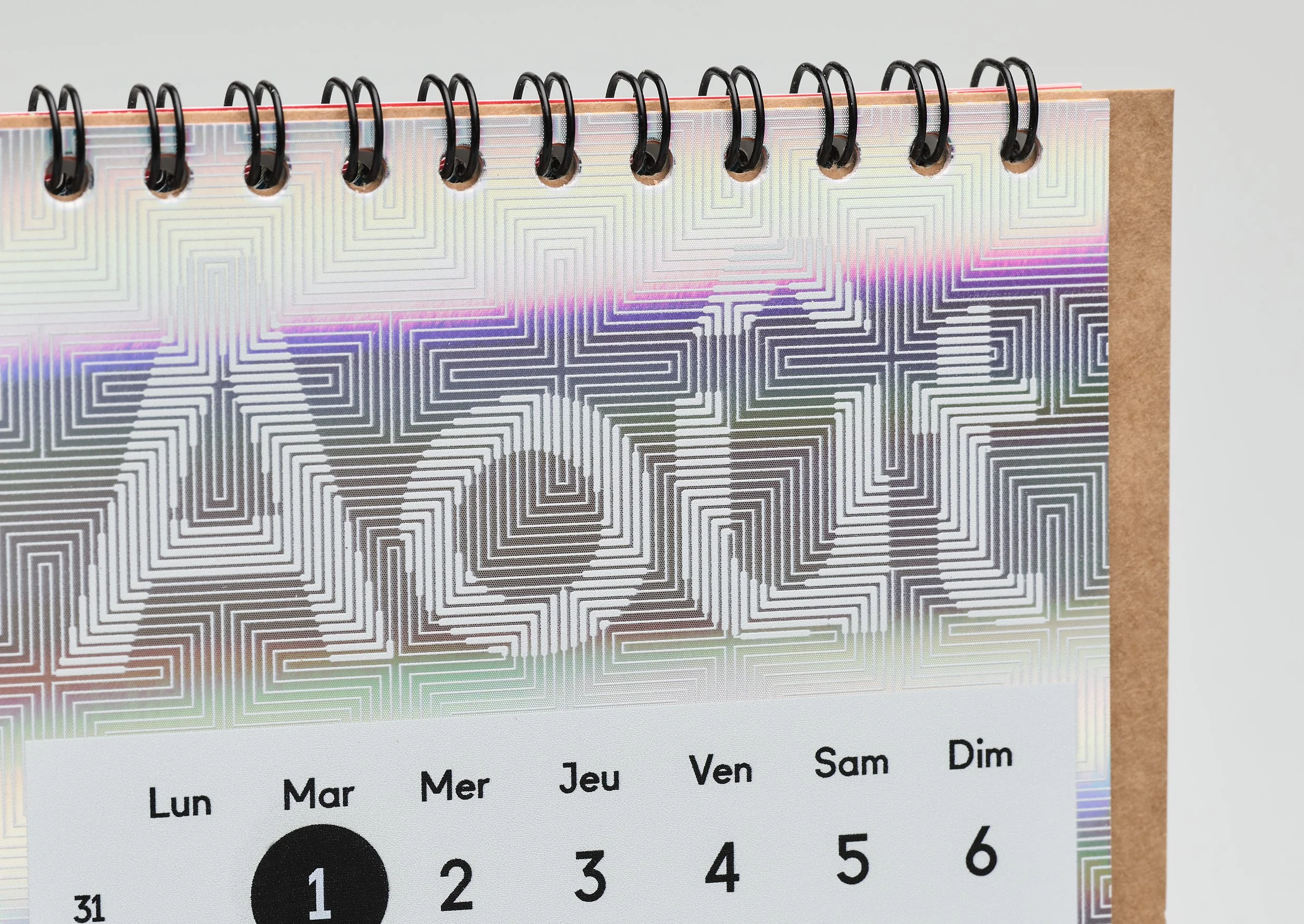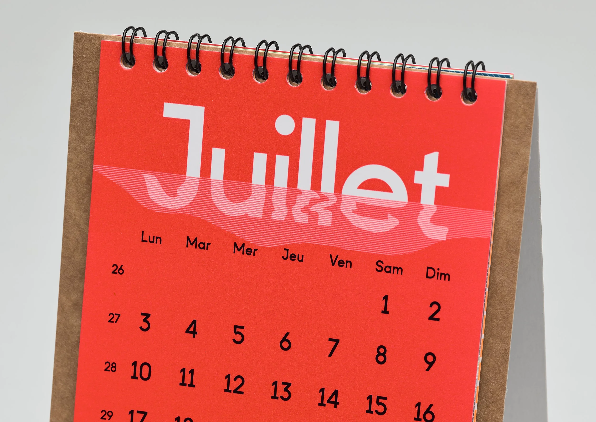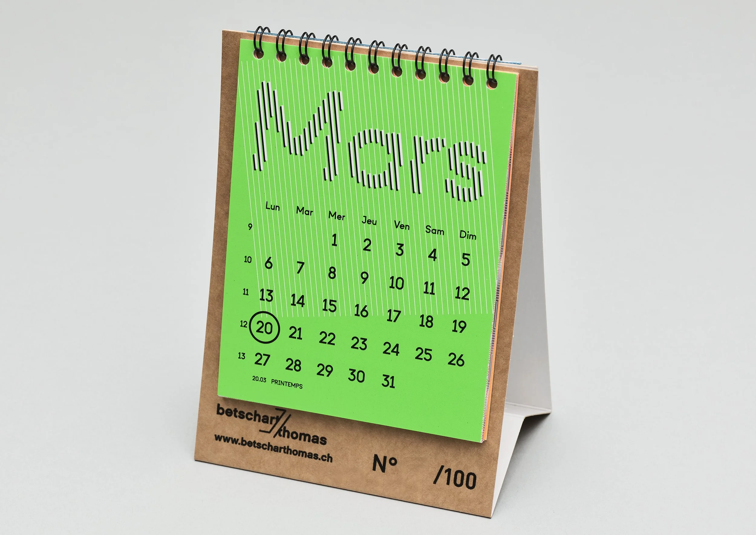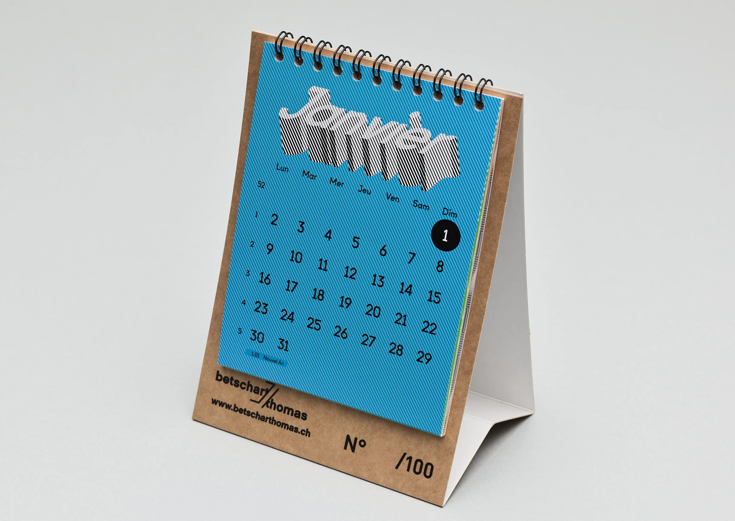 Layout for a calendar with custom typeface. Offset printing (and inkjet printing on glossy paper).